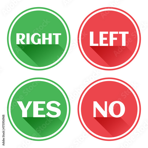 Set red and green icons buttons. Right and left. Yes and no. Vector illustration.