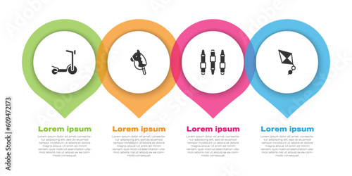 Set Roller scooter, Toy horse, Marker pen and Kite. Business infographic template. Vector
