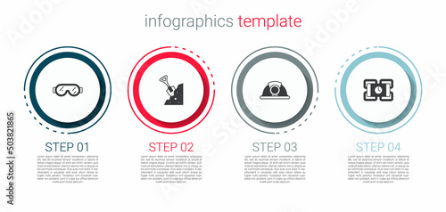 Set Safety goggle glasses, Shovel and stone, Miner helmet and Dynamite. Business infographic template. Vector