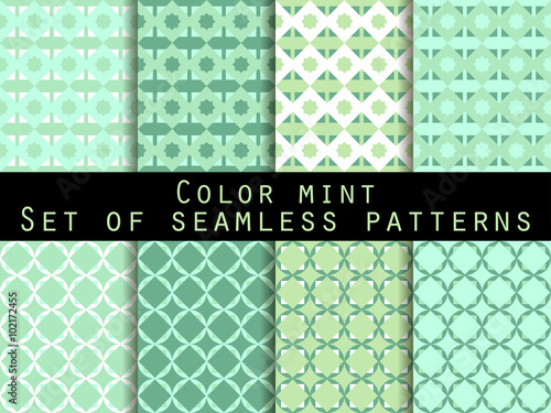 Set seamless patterns. Color mint. The pattern for wallpaper, bed linen, tiles, fabrics, backgrounds. Vector illustration.