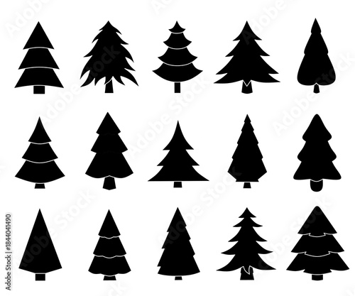 Set simple pine tree sillhouette vector,set pine tree sillhouette stock vector,set cartoon pine tree black image,set sillhouette pine tree illustration