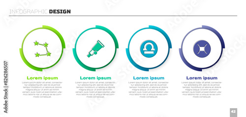 Set Star constellation zodiac, Telescope, Libra and Gemini. Business infographic template. Vector