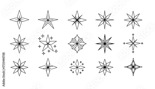 Set stars line art icon. Vector four-pointed star for logo, social media stories