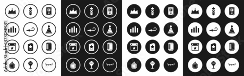 Set Stereo speaker, Birthday party horn, Music equalizer, Crown, Party hat, Candy, Beer can and Calendar icon. Vector