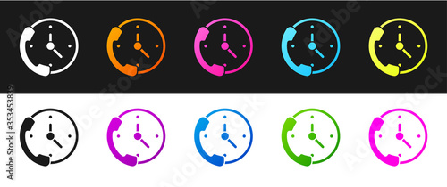 Set Telephone 24 hours support icon isolated on black and white background. All-day customer support call-center. Full time call services. Vector Illustration.