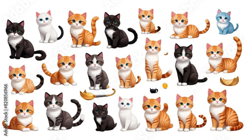 set trendy background cute cat playful animal paws cartoon adorable designs illustrations kitten pet clip art paw sticky isolated portrait funny mammal fur white eye realistic digital illustration