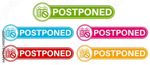 set trendy colorful postponed labels icon. delay sign reschedule symbol social media template design vector illustration