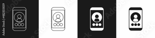 Set Video chat conference icon isolated on black and white background. Online meeting work form home. Remote project management. Vector