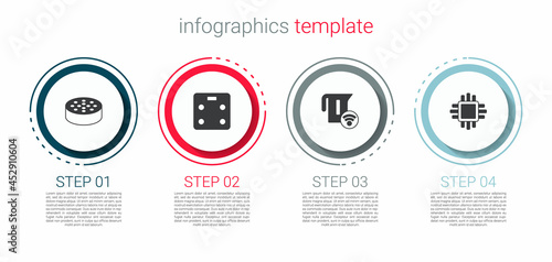 Set Water sensor, Smart bathroom scales, electric kettle and Processor with CPU. Business infographic template. Vector