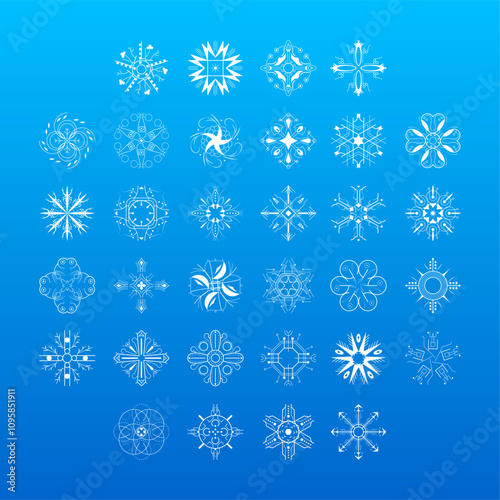 Set White Colleciton Line Snowflake Winter Decoration Elements Vector Design Style