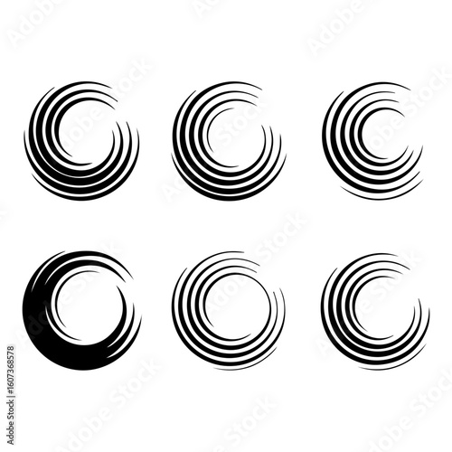 Set with circles. Rotating art lines in circle shape as symbol, logo or icon.