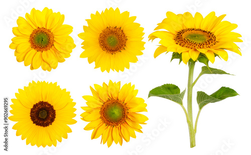 Set. Yellow sunflowers on a blank background
