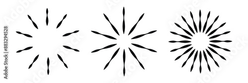 sets Radial circle lines: circular radiating geometric shapes resembling sun rays. Abstract design element. Vector illustration on a white background. Eps 10.