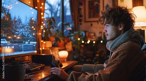 Setting Up Entertainment: Student Arranging Gaming Console and TV in Cozy Living Room