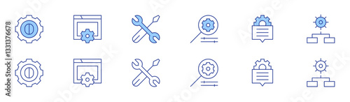 Settings icon set in two styles, Duotone and Thin Line style. Editable stroke. gear, website, tool, settings