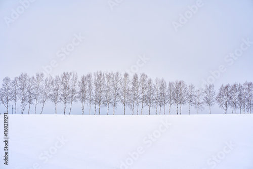 Seven star tree , famous destination travel in snow winter sapporo japan.