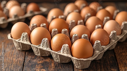 Several Brown Eggs are Displayed in Paperboard Cartons