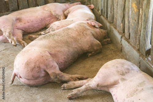 Several pigs stayed in the pens where farmers were raised, and when they finished eating, they continued to sleep.