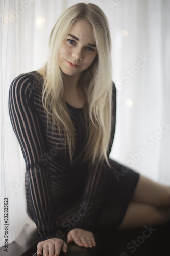 sexy czech blonde girl in home interior, beautiful adult model