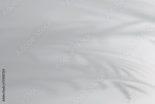 Shadow of plant falling on white wall, space for text