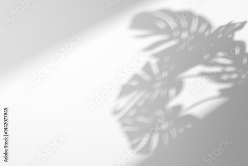 shadow overlay effects of realistic window and monstera branch shadow with light blur on transparent background,Natural shadow,Summer sunlight and shadow overlay effect