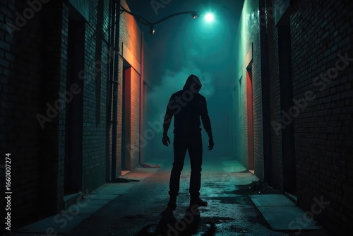 Shadowed Figure in Dark Alleyway Clenched Fists, Impending Violence, Tense Atmosphere, Crime Scene
