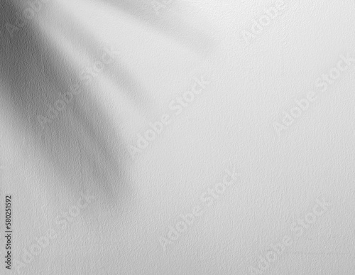 Shadows from palm or coconut leaves On the concrete wall painted white above. Abstract background and copy space. Empty.