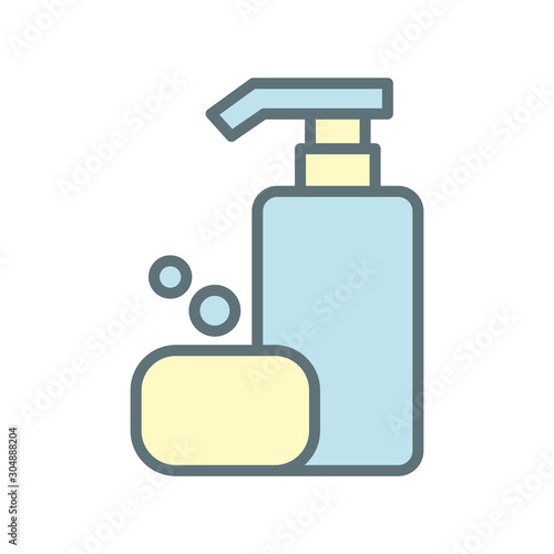 Shampoo bottle and soap icon vector design template flat style isolated on white background