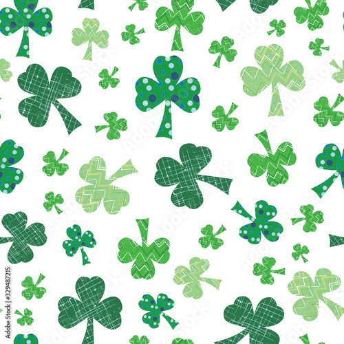 Shamrock mixer green clovers seamless vector repeat surface pattern design