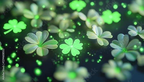 Shamrocks surrounded by a soft green glow, perfect for St. Patrick's Day branding projects.