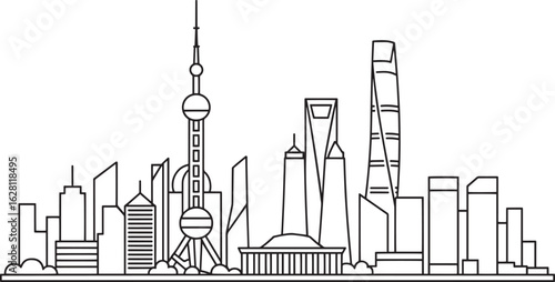 Shanghai Skyline Silhouette Vector Illustration Detailed Cityscape Outline of China Landmark