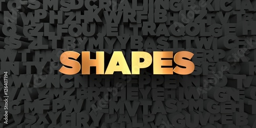 Shapes - Gold text on black background - 3D rendered royalty free stock picture. This image can be used for an online website banner ad or a print postcard.