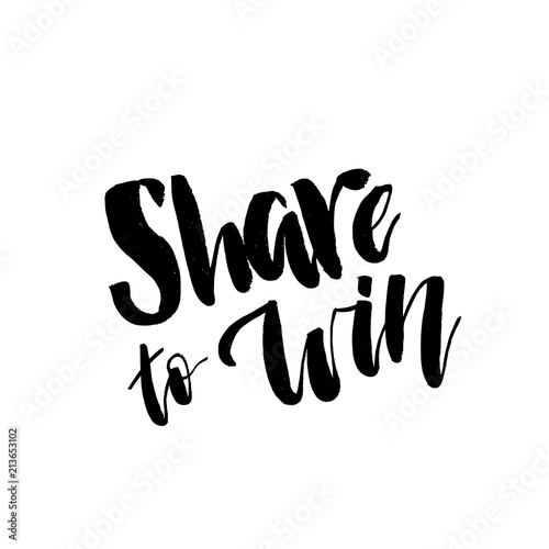 Share to Win, Giveaway Lettering text. Typography for promotion in social media isolated on white background. Free gift raffle, win a freebies. Vector advertising.