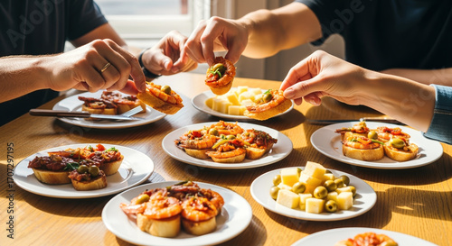 Shared dining experience with delicious tapas and appetizers for social gathering