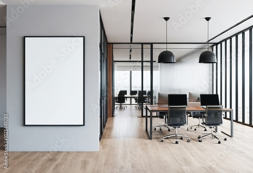 Shared Office Space Featuring Blank Billboard. Made with Generative AI Technology