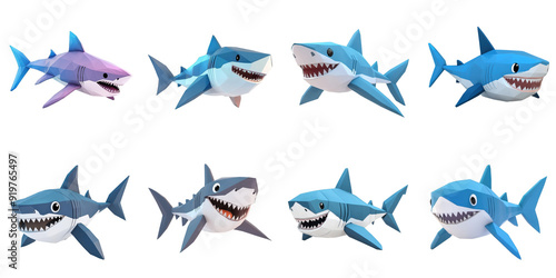 Shark cartoon png isolated object set transparent background for all purpose.
