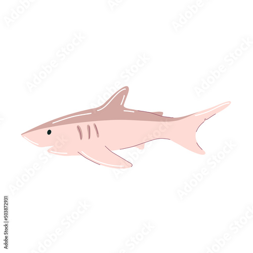 Shark. Cute hand drawn shark character. Children's marine oceanic fish. Vector illustration on a white background.