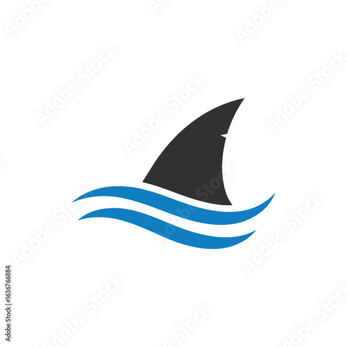 Shark Fin Silhouette Emerging from Blue Ocean Waters Minimalist Vector Graphic Illustration for Sea Life and Marine Concepts