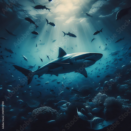 Shark Gliding Through the Water with a Dramatic Effect"