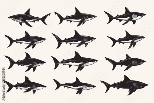 shark logo design, modern and stylish shark silhouette clipart logos ideal for a brand seeking a contemporary identity