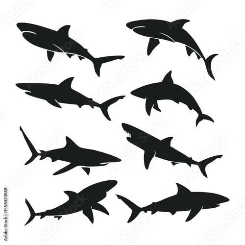 Shark, Silhouette, Shark Silhouette Vector Set On White Background