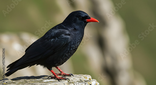 Sharp Red-Beaked Chough Against Mountain Cliff PNG