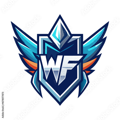 Sharp Symmetrical WF Esports Emblem with Futuristic Feather Motif