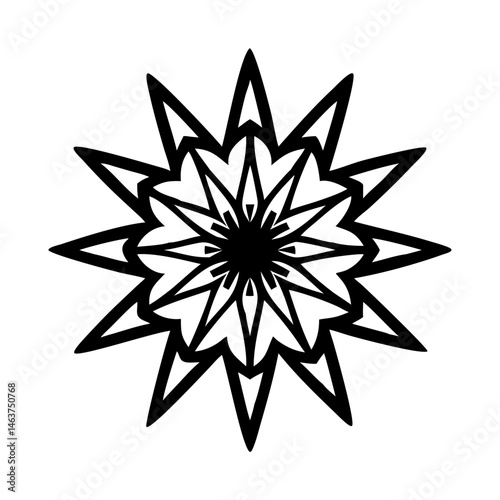 Sharp-Edged Mandala Icon with Starburst Structure Representing Geometric Spiritual Design
