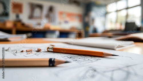 Sharpened Pencil on Sketch: A Glimpse into Architectural Design