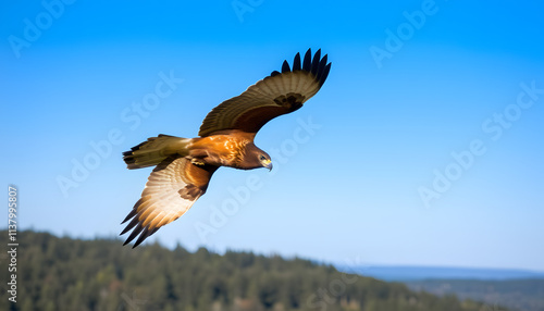 Sharp-Eyed Hawk Flying High Above the Forest Canopy