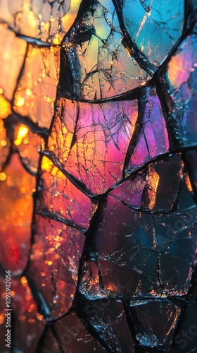 Shattered Glass Reflecting Vibrant Rainbow Hues
