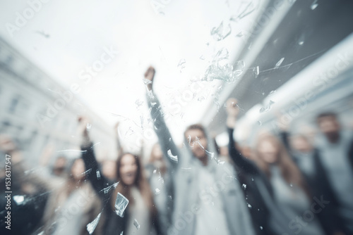shattered vehicle mirror reflecting powerful protest scene raw emotions of individuals