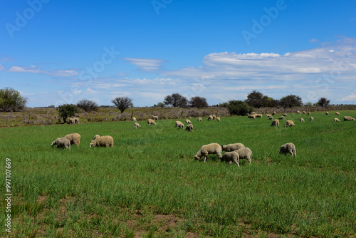 Sheep in rural landscape, La Pampa Province, Patagonia,Argentina
