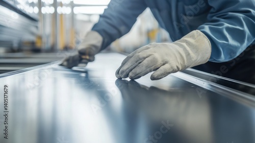 Sheet metal worker cutting and shaping panels for HVAC duct system. Featuring craftsmanship and precision